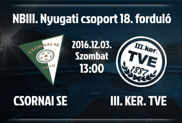 A következő hétvégén az első tavaszi mérkőzésünk következik így december elején, ráadásul nem is egy könnyű ellenfél, a 7. helyezett Csorna vár majd ránk a 150 km-es út végén. A vendéglátóink mérlege 8 győzelem, 2 döntetlen és 7 vereség, a gólarányuk 27:26. A Csorna sokáig a bajnokság meglepetés csapatának számított, hiszen a 6. fordulóban szenvedték csak el az első vereségüket, de még 9 forduló után is 7 győzelem, 1 döntetlen és 1 vereség állt a nevük mellett. Azóta viszont nagyot fordult velük a világ, a nagy sorozatukat követően 6-szor hagyták el vesztesen a pályát, emellett csupán 1-1 döntetlent és győzelmet tudnak felmutatni. Közben edzőváltás is történt a csapatnál, Hannich Pétert Urbán Flórián váltotta, akivel eddig még nem sikerült pontot szerezniük. A csornaiak legjobb góllövője a 10 gólos Weitner Ádám, aki az első meccsen pont ellenünk kezdte meg a gólgyártást, így rá mindenféleképpen érdemes lesz odafigyelni. A mérkőzés szombaton 13 órakor veszi kezdetét.