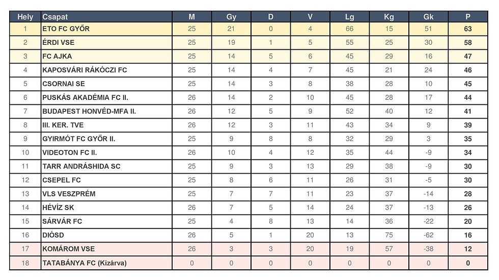 Ezzel a vereséggel továbbra is a 8. helyen áll csapatunk 39 ponttal.
