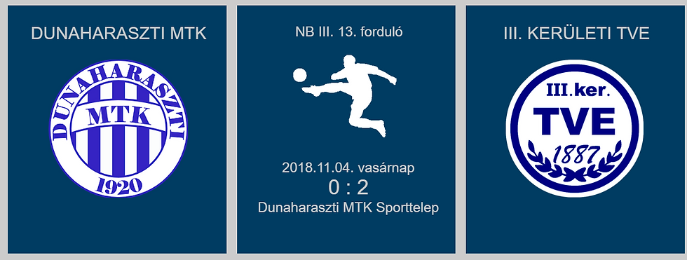 NB III. Nyugat csoport 10. forduló 2018.10.14 - 14:30 Dunaharaszti, Dunaharaszti MTK Sporttelep